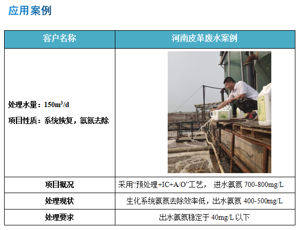 以上皮革廢水的特點使得皮革廢水的處理難度較大,其難度在難度分級中處于中上等。企業(yè)尤其是在氨氮、總氮減排方面面臨巨大的壓力。針對這一問題,目前最為安全有效、長期穩(wěn)定的方式就是對系統(tǒng)進行生物強化。研究顯示,日常運行過程中,定期投加菌劑,可以更好的提高系統(tǒng)的耐沖擊能力,但目前大多數(shù)廠家,通常是在系統(tǒng)受到?jīng)_擊時選擇投加大量菌劑,無論是哪種情況,選對菌劑很重要。庫巴魯®氨氮激活菌201 ,一款氨氮去除率高達99.9%的硝化細(xì)菌產(chǎn)品,有效提高系統(tǒng)的硝化能力,增加生化系統(tǒng)抗沖擊性,3天見效,15達標(biāo)。小小的細(xì)菌,大大的能量!