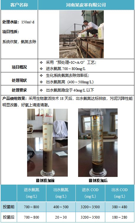 河南某皮革有限公司廢水氨氮去除案例